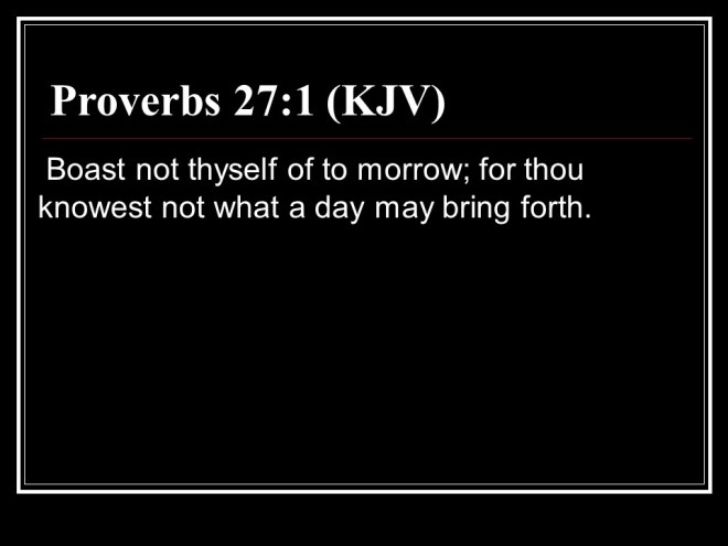 James 4, Pride Promotes Strife, Humility Edifies, Do not Judge a Brother, Do not Boast about Tomorrow.
