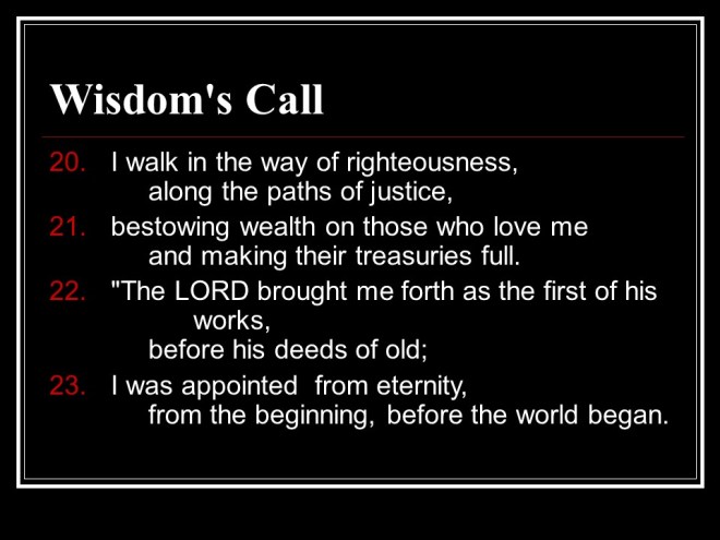 Proverbs 8, The Excellence of Wisdom.