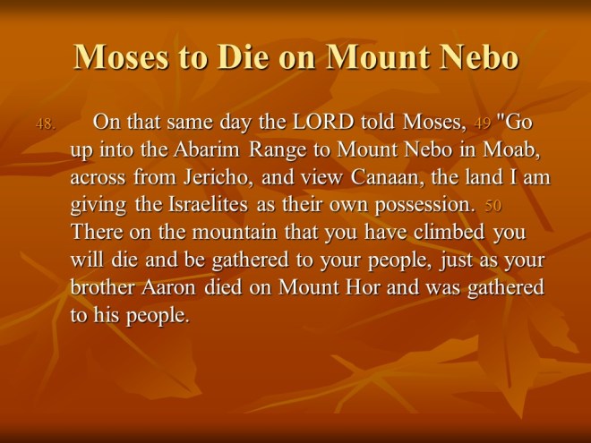 Deuteronomy 32, The Song of Moses, Moses to Die on Mount Nebo.