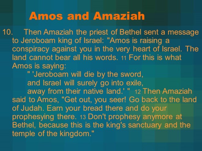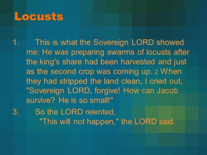 Amos 7, Vision of the Locusts, Vision of the Fire, Vision of the Plumb Line, Amaziah’s Complaint.