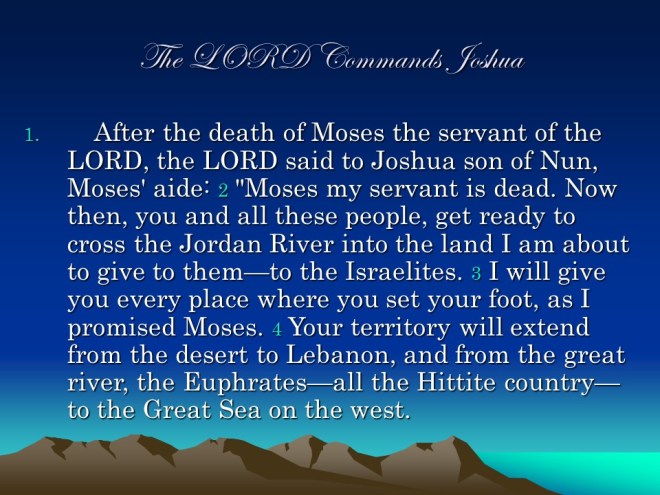 Joshua 1, God’s Commission to Joshua, The Order to Cross the Jordan.