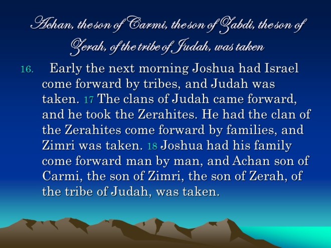 Joshua 7, The Ai Defeat, The Sin of Achan.