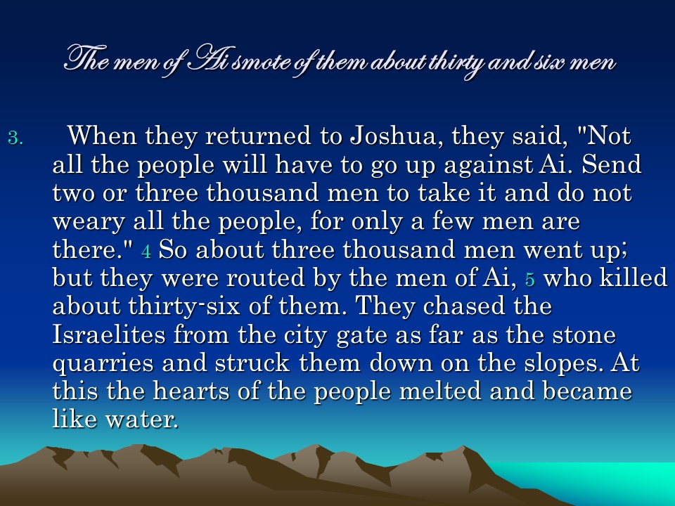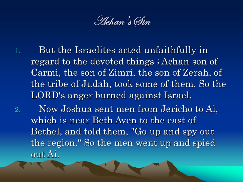 Joshua 7, The Ai Defeat, The Sin of Achan.