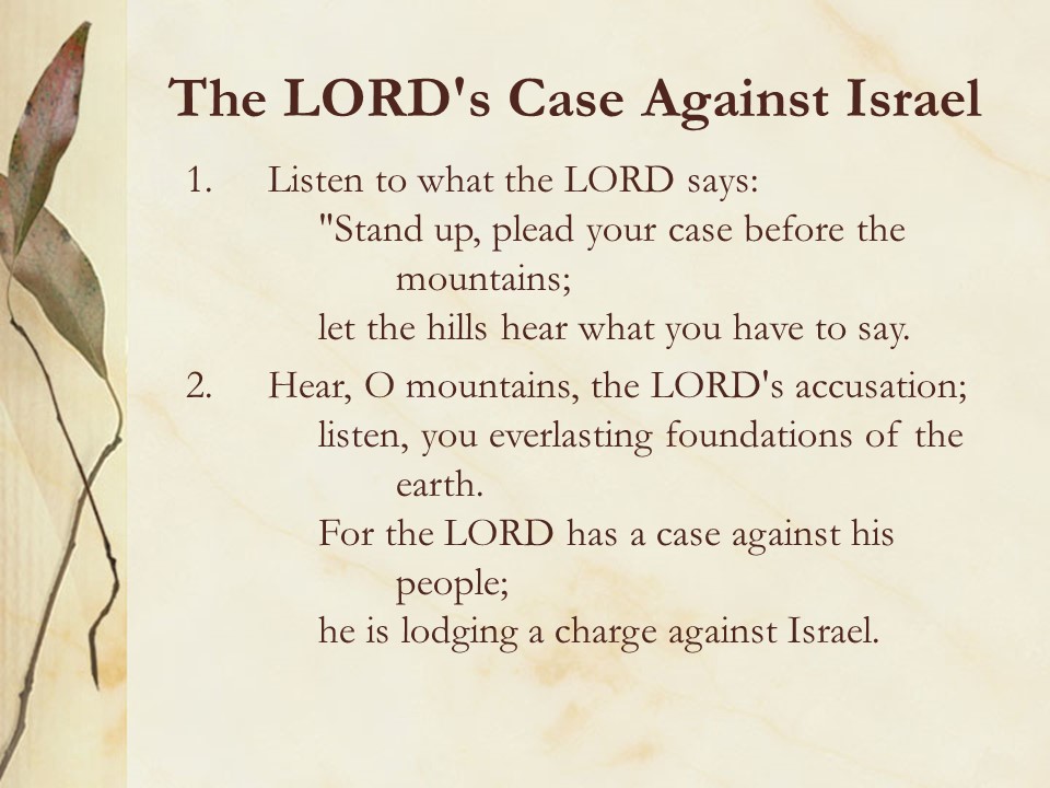 Micah 6, God Pleads with Israel,Punishment of Israel’s Injustice.
