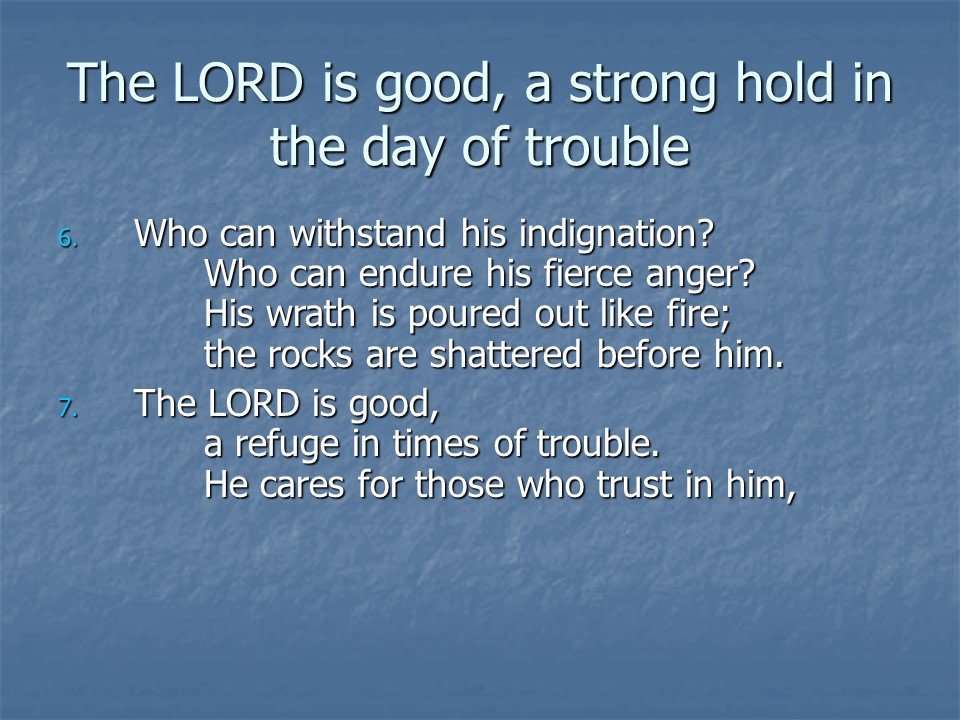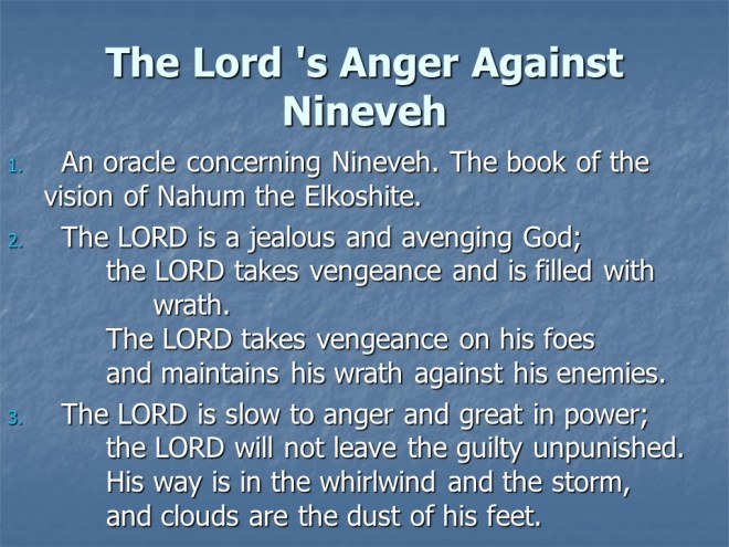 Nahum 1, God’s Wrath on His Enemies.