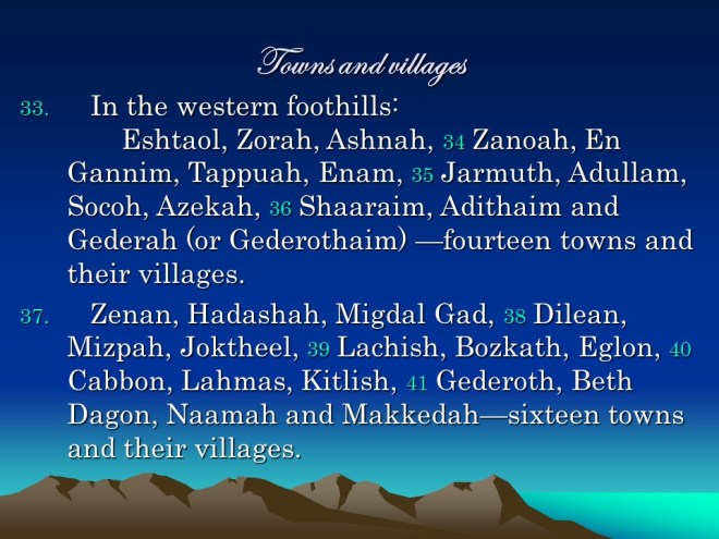 Joshua 15, The Land of Judah, Caleb Occupies Hebron and Debir, The Cities of Judah.