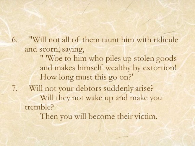 Habakkuk 2, The Just shall Live by Faith, Woe to the Wicked.
