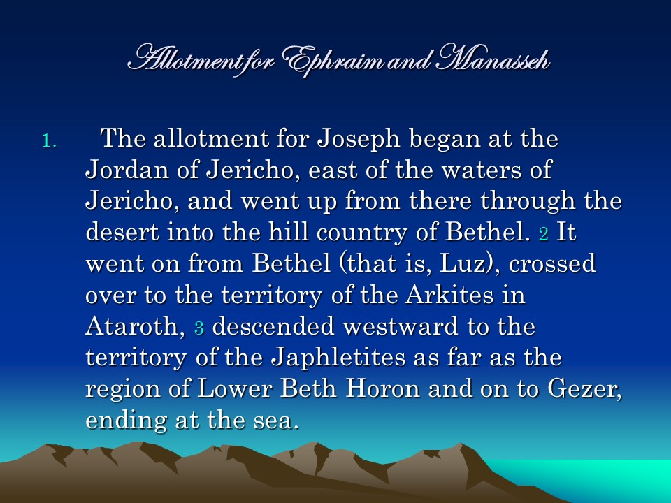 Joshua 16, West Manasseh, The Land of Ephraim.