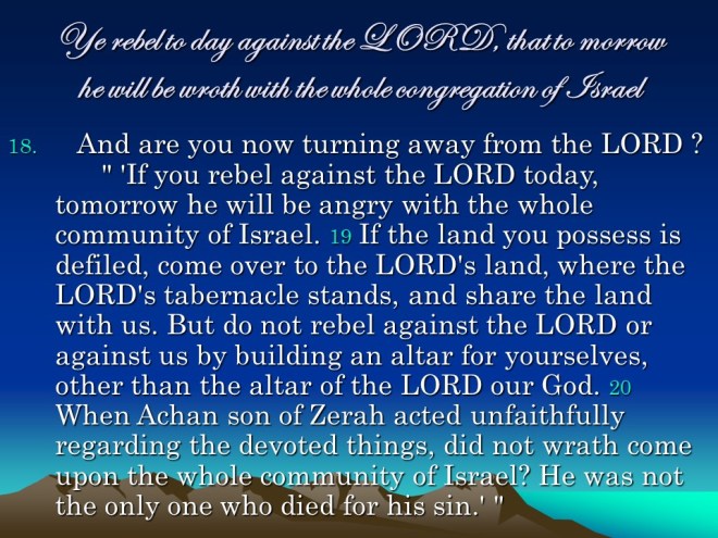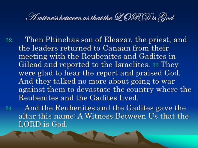 Joshua 22, Eastern Tribes Return to their Lands, An Altar by the Jordan.