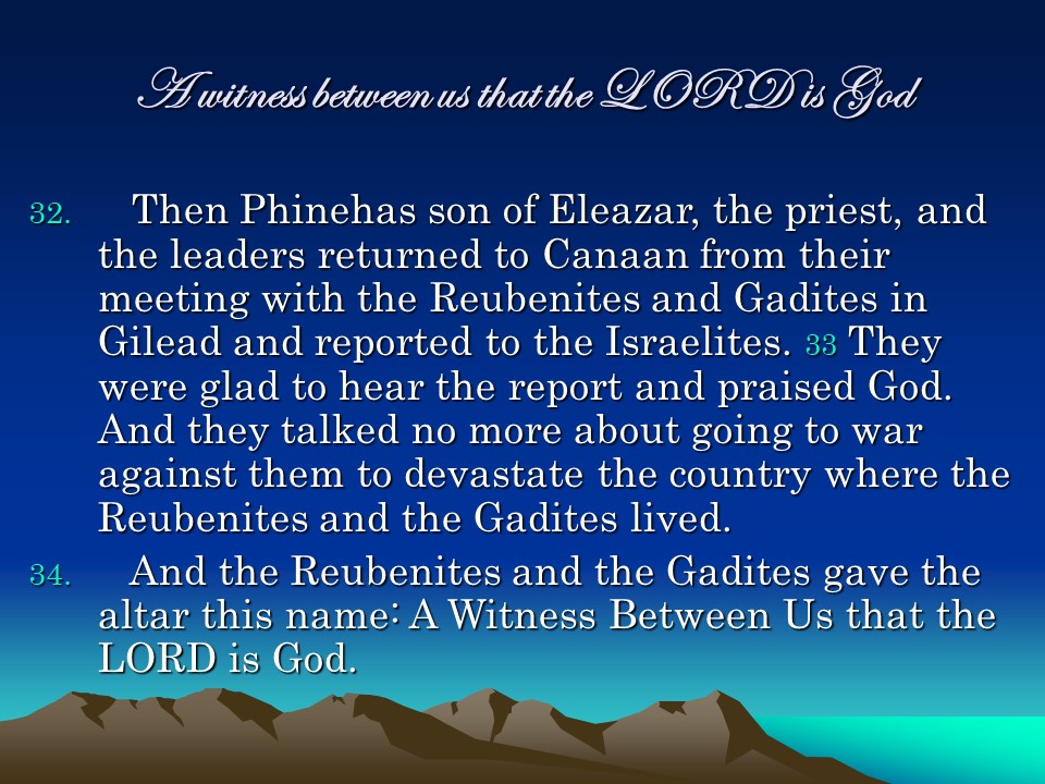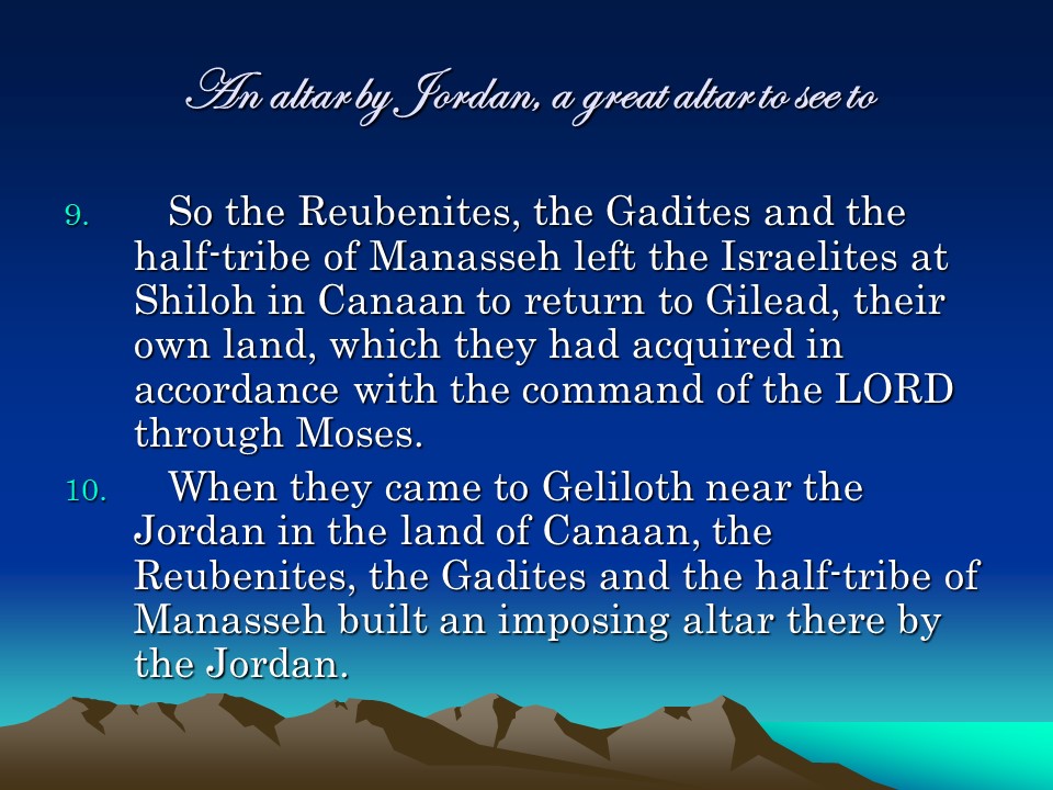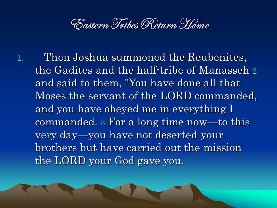 Joshua 22, Eastern Tribes Return to their Lands, An Altar by the Jordan.