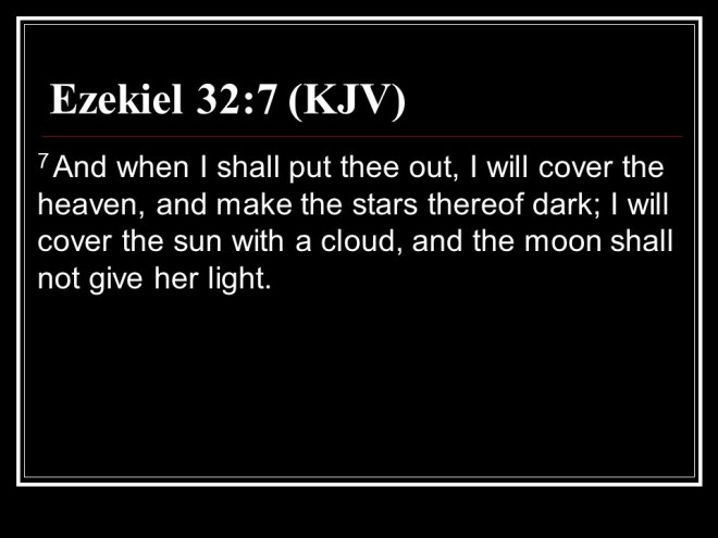 Revelation 8, The Seventh Seal, First Trumpet: Vegetation Struck, Second Trumpet: The Seas Struck, Third Trumpet: The Waters Struck, Fourth Trumpet: The Heavens Struck.