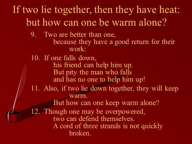 Ecclesiastes 4, Oppression but no Comforter, Vanity of Selfish Toil, The Value of a Friend, Popularity Passes Away.