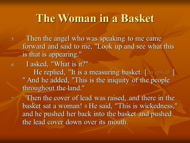 Zechariah 5, Vision of the Flying Scroll, Vision of the Woman in a Basket.