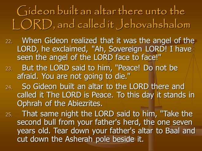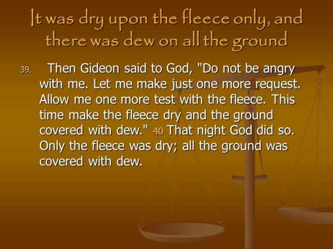 Judges 6, Midianites oppress Israel, Gideon, Gideon Destroys the Altar of Baal, The Sign of the Fleece.