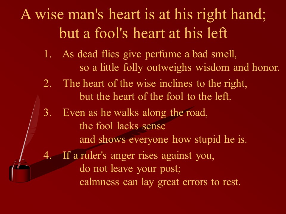 Ecclesiastes 10, Wisdom versus Folly.