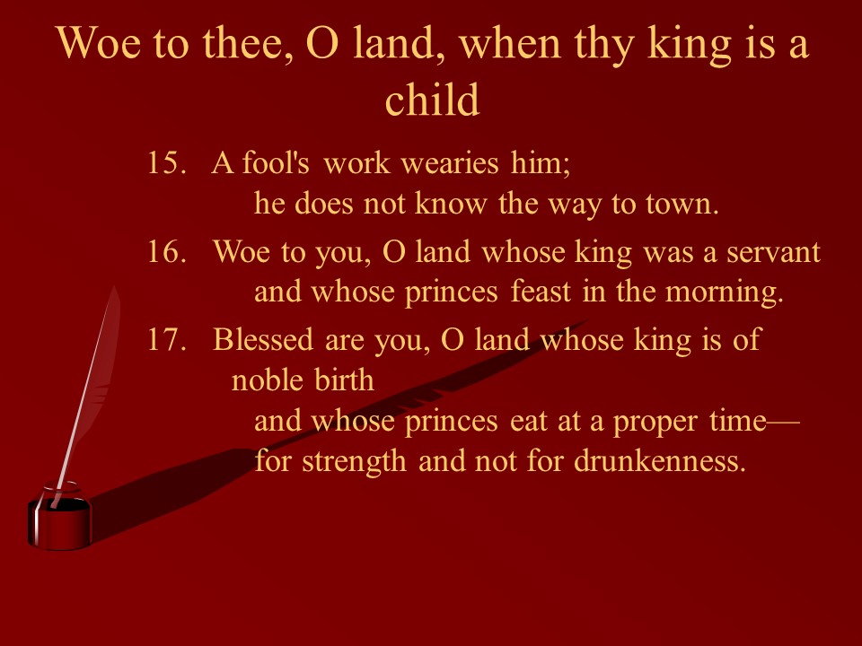 Ecclesiastes 10, Wisdom versus Folly.