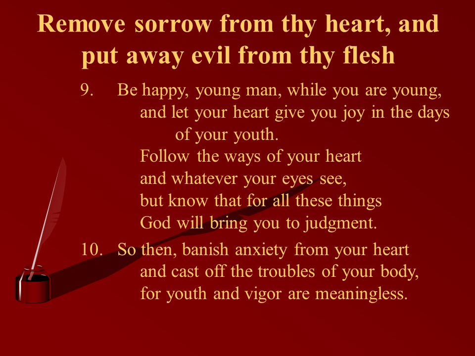 Ecclesiastes 11, The Value of Diligence, Seek God early in Life.