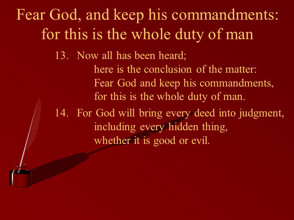 Ecclesiastes 12, Seek God Early in Life, The Whole Duty of Man.