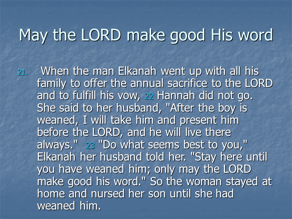 1 Samuel 1, The Family of Elkanah, Hannah’s Vow, Samuel is Born and Dedicated.