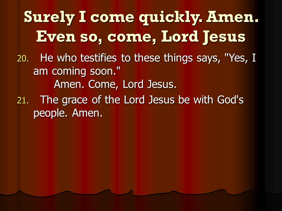 Revelation 22, The River of Life, The Time is Near, Jesus Testifies to the Churches, Don’t Add or Take Away from God’s Word, I am coming Quickly, Amen!