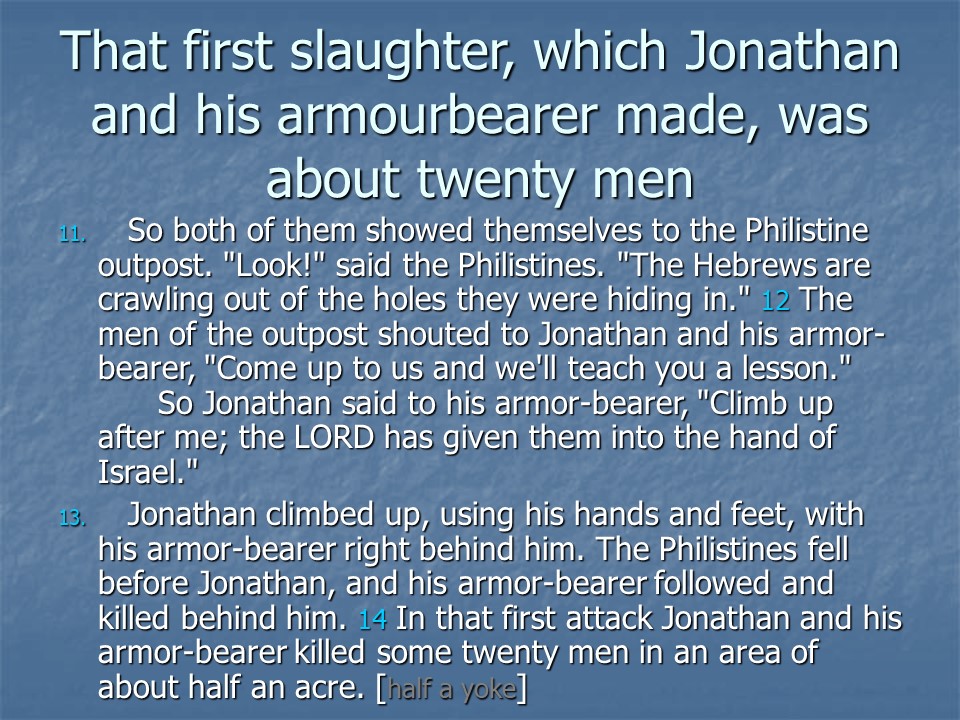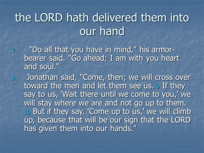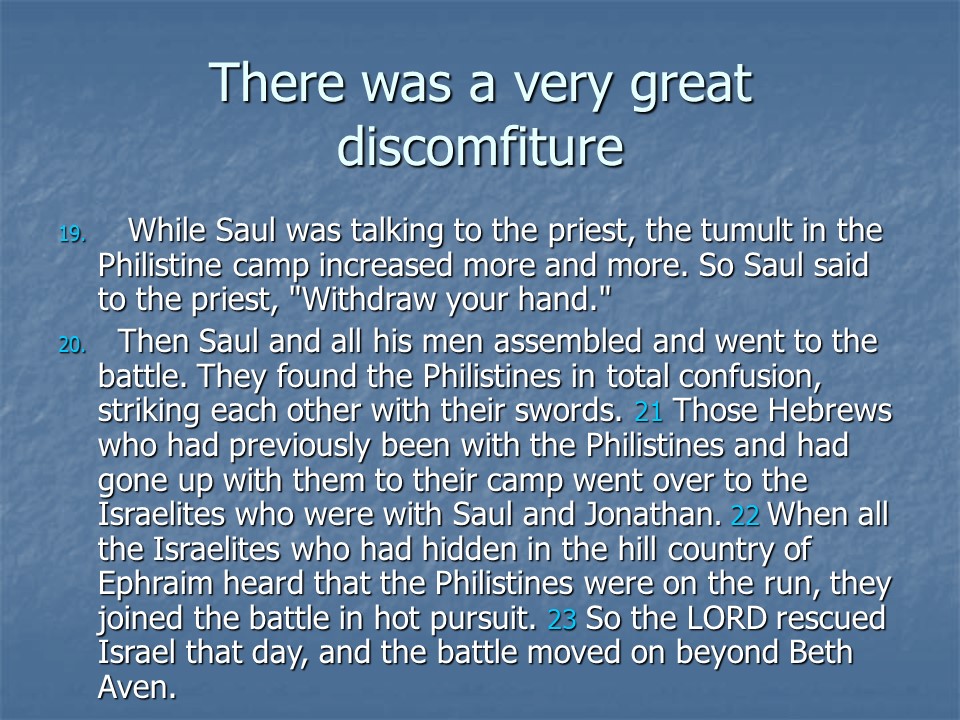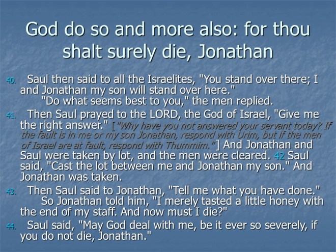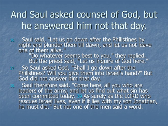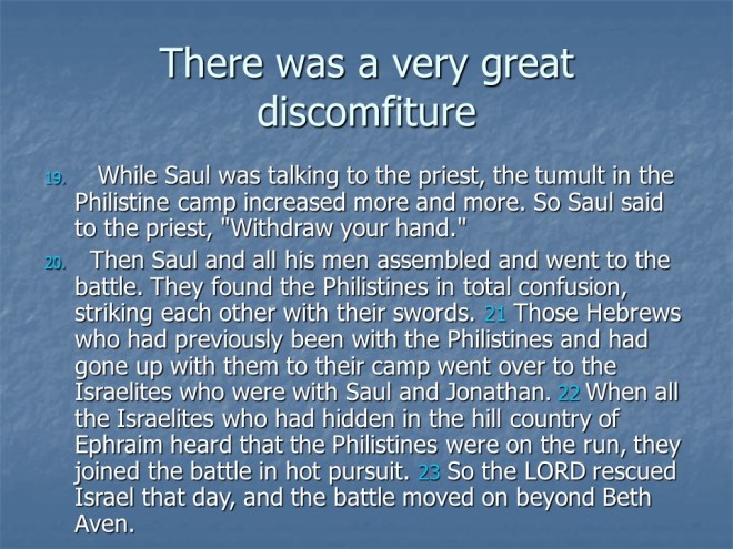 1 Samuel 14, Jonathan Defeats the Philistines, Saul’s Rash Oath, Saul’s Wars.