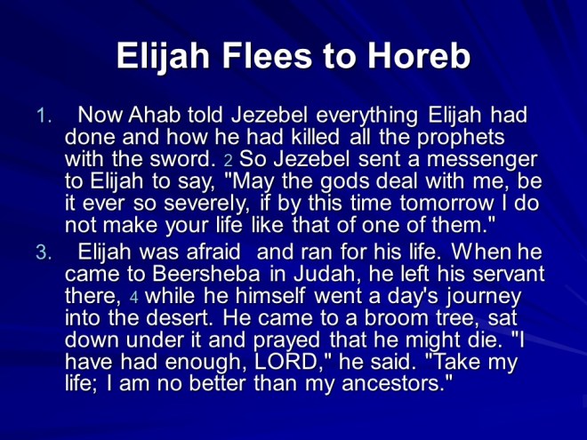 1 Kings 19, Elijah flees from Jezebel, The Still Small Voice, Elisha follows Elijah.