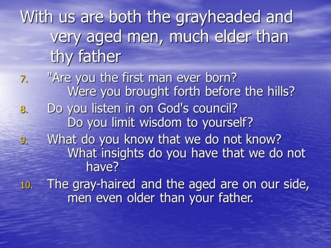 Job 15, Eliphaz Accuses Job of Folly.