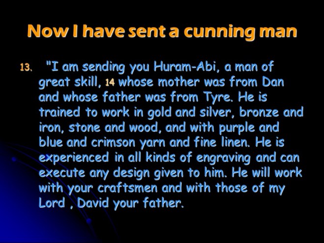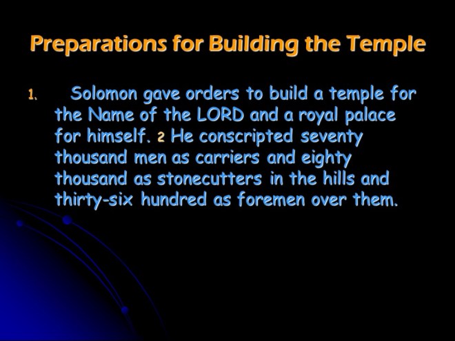 2 Chronicles 2, Solomon Prepares to Build the Temple.
