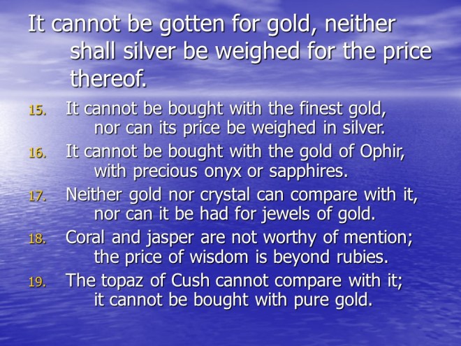 Job 28, Job’s Discourse on Wisdom.