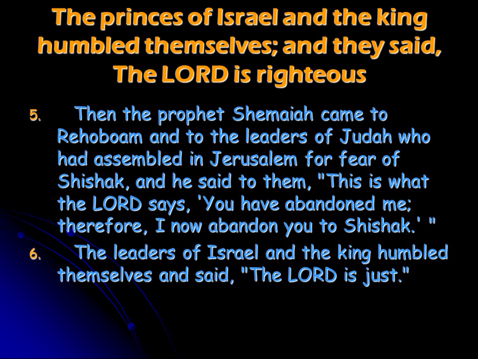 2 Chronicles 12, Egypt Attacks Judah, The end of Rehoboam’s Reign.