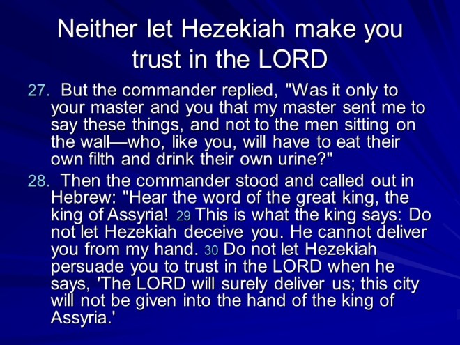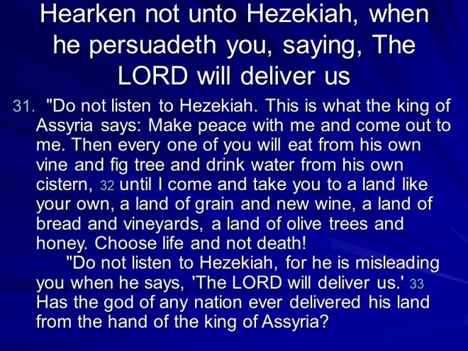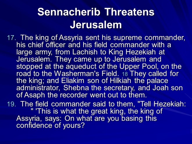 2 Kings 18, Hezekiah Reigns in Judah, Sennacherib boasts against the LORD.