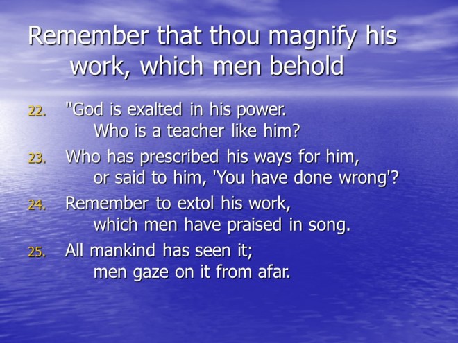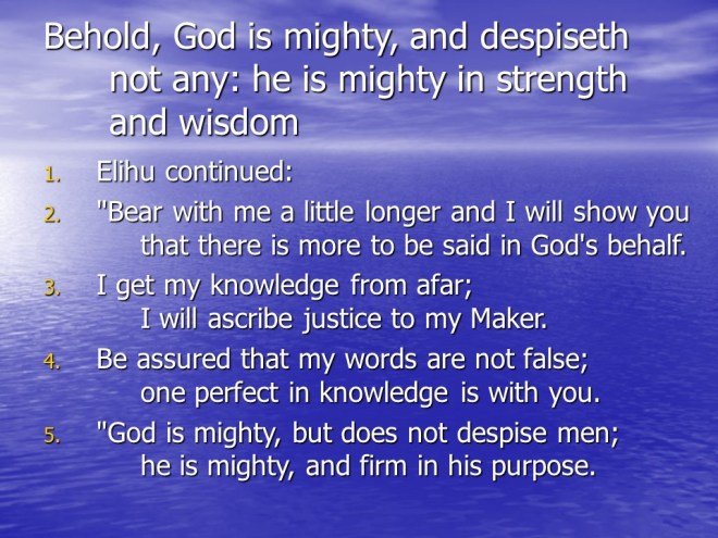 Job 36, Elihu Proclaims God’s Goodness, Elihu Proclaims God’s Majesty.