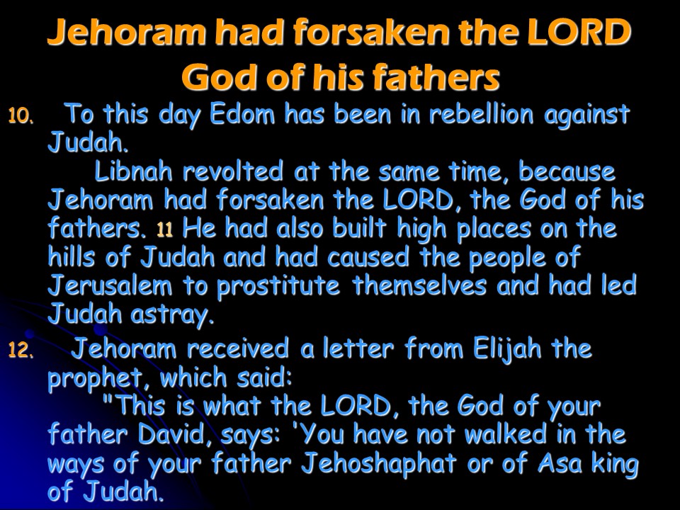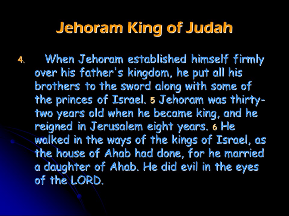 2 Chronicles 21, Jehoram Reigns in Judah.