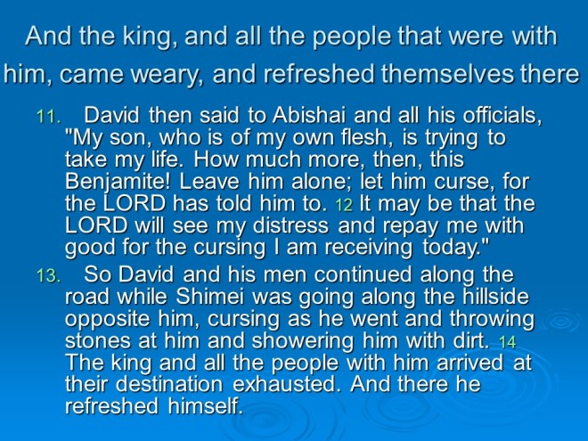 2 Samuel 16, Mephibosheth’s Servant, Shimel Curses David, the Advice of Ahithopel.