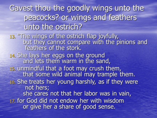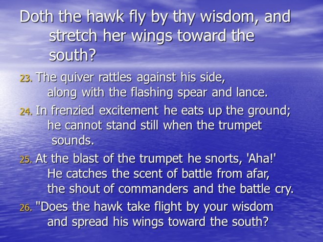 One thought on “Job 39, the LORD Proclaims His Magnificent Creation.”