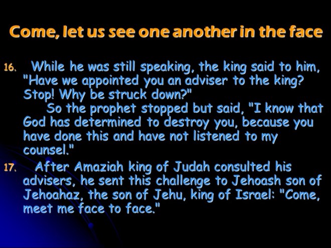 2 Chronicles 25, Amaziah Reigns in Judah, the War against Edom, Israel Defeats Judah, Death of Amaziah.