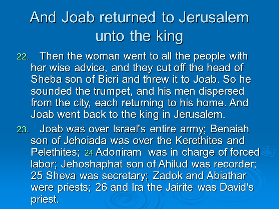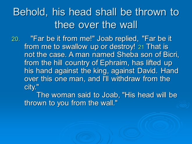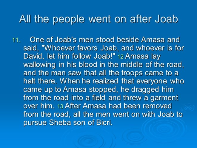 2 Samuel 20, the Rebellion of Sheba, David’s Government Officers.