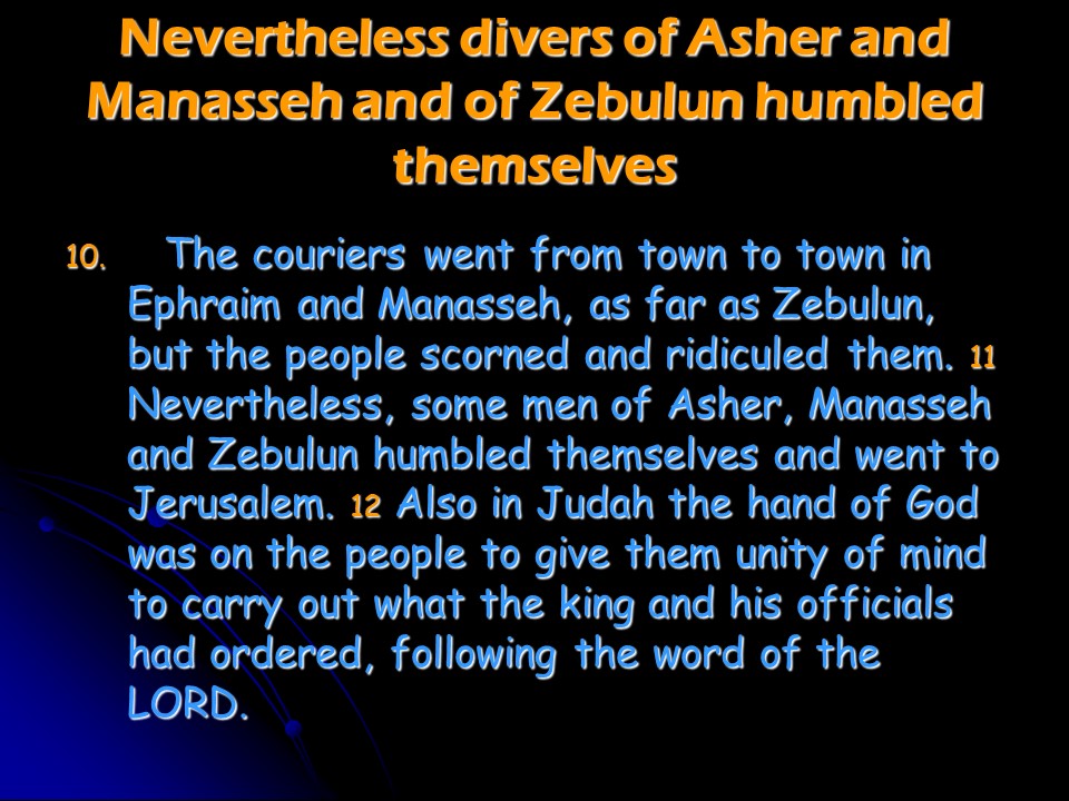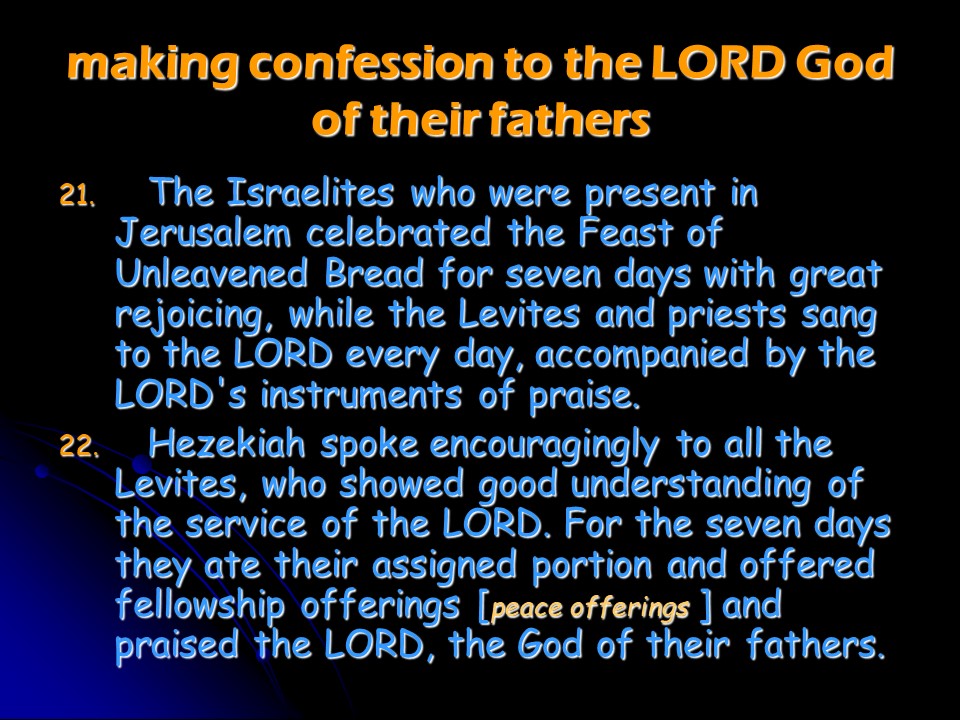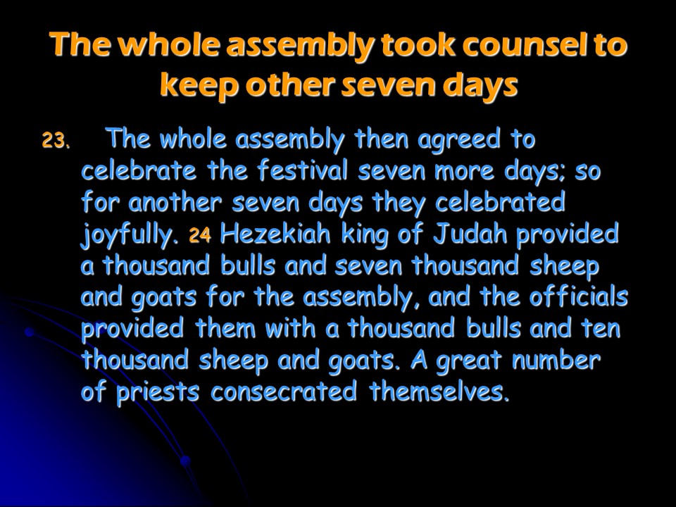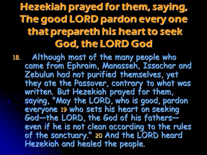 2 Chronicles 30, Hezekiah Celebrates the Passover.