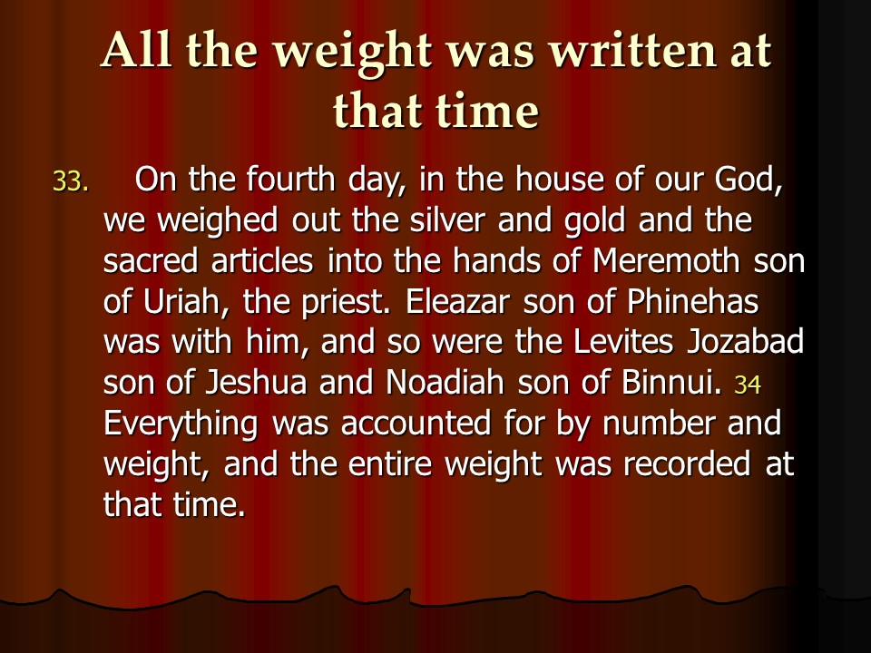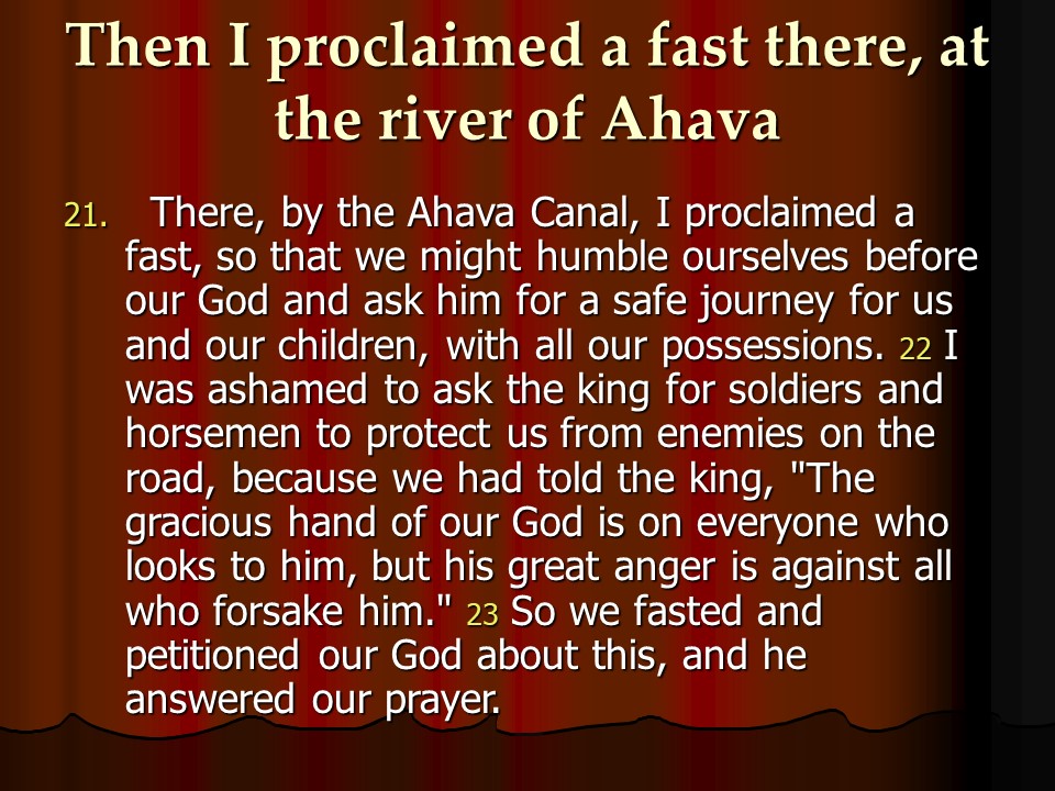 Ezra 8, Heads of Families who Returned with Ezra, Temple Servants, Fasting and Prayer for Protection, Gifts for the Temple, the Return to Jerusalem.
