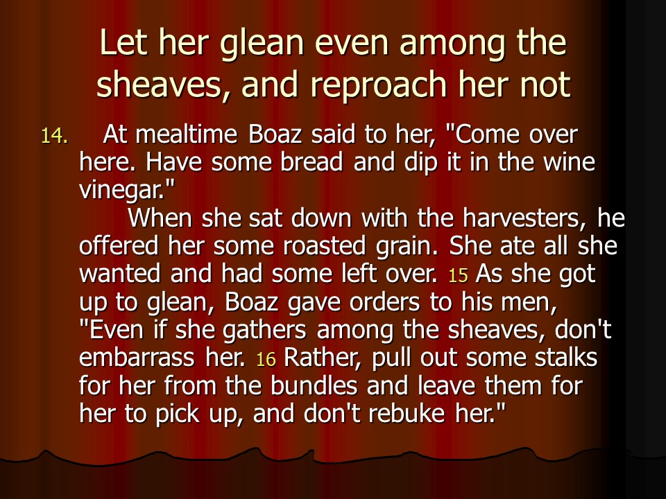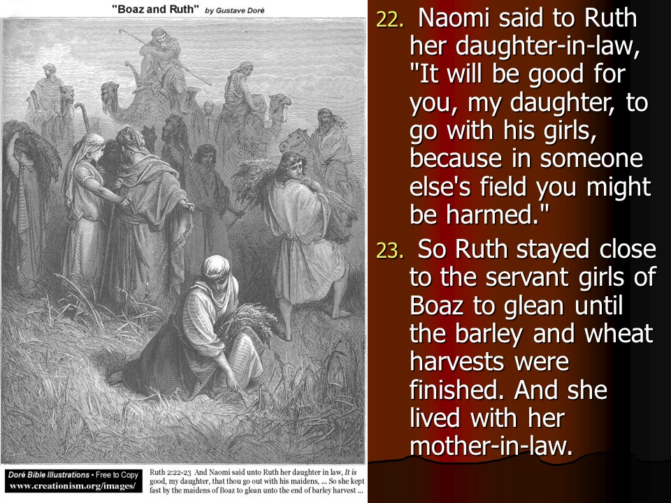 Ruth 2, Ruth meets Boaz.