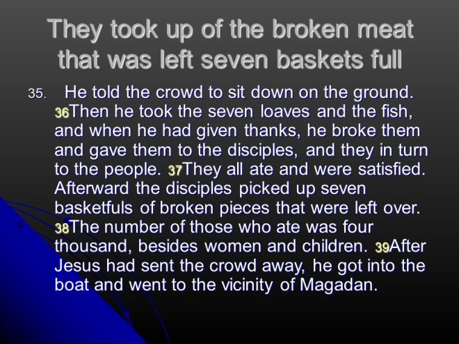 Matthew 15:21-39, the faith of the Canaanite woman, Jesus feeds the four thousand.