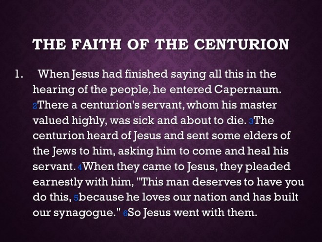 Luke 7:1-23, the Centurion’s faith, Jesus raises a widow’s son in Nain, John the Baptist has questions.