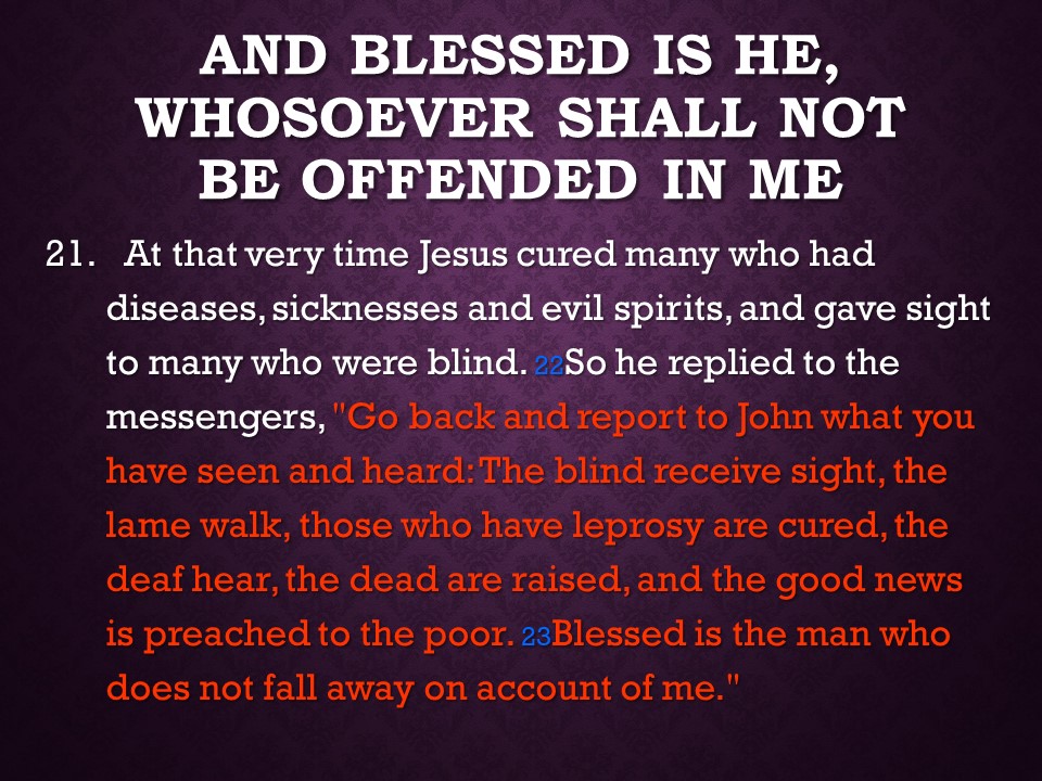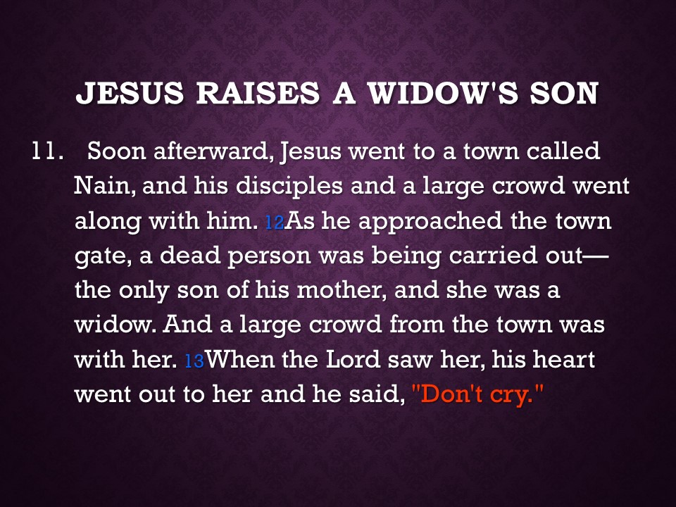 Luke 7:1-23, the Centurion’s faith, Jesus raises a widow’s son in Nain, John the Baptist has questions.