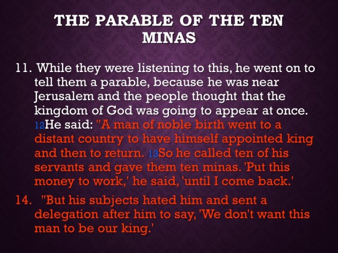Luke 19:1-27, Zacchaeus, the Parable of the Minas.