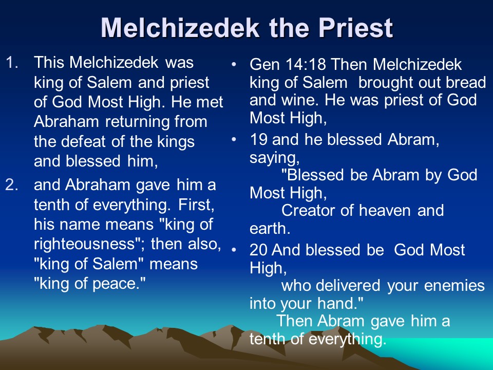 Melchizedek was either a real person, king of Salem, later to be named Jerusalem, or he was a Christophany, that is a manifestation of Jesus Christ.