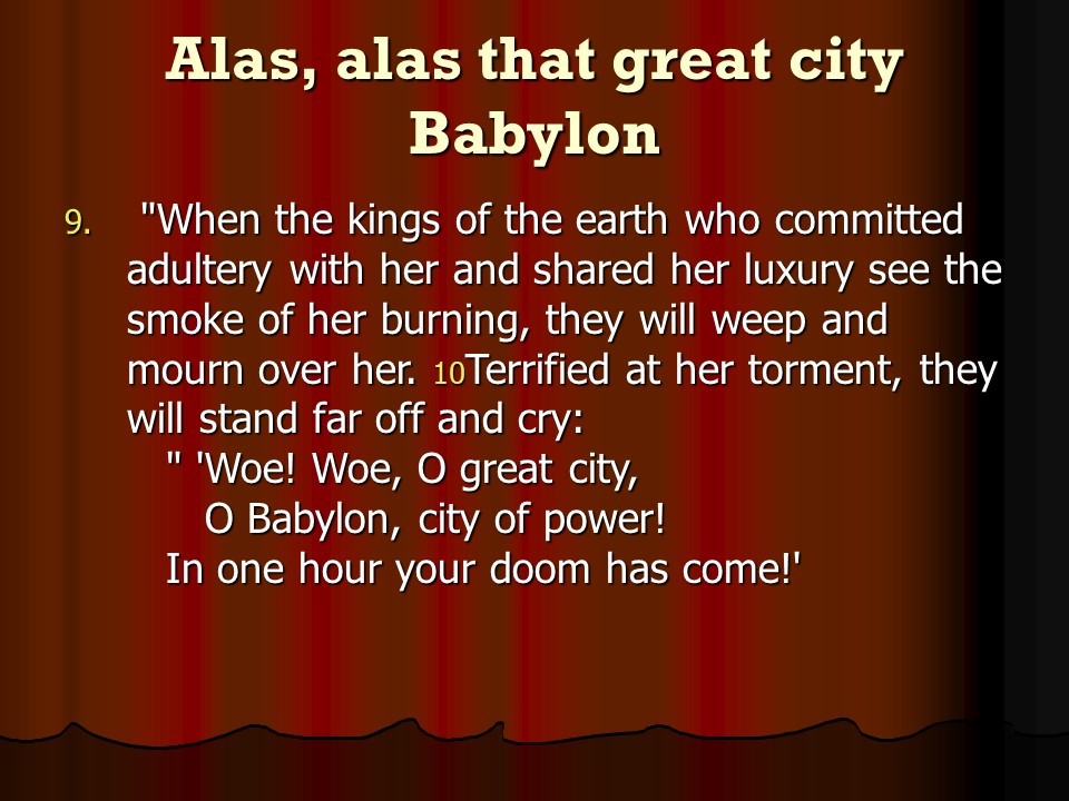 Revelation 18:1-20, The Fall of Babylon the Great, The World Mourns the Fall of Babylon.