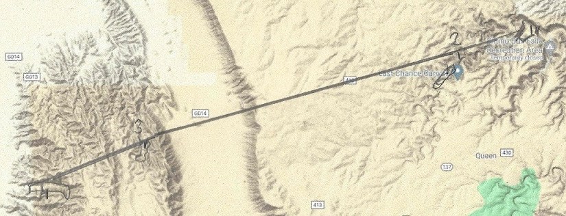 The Transcontinental Aqueduct. Leg 7: White Oaks Canyon Lake (to be made) to the Arch Lewis Canyon Reservoir via a 20 mile tunnel under the Guadaloupe Mountains in New Mexico.