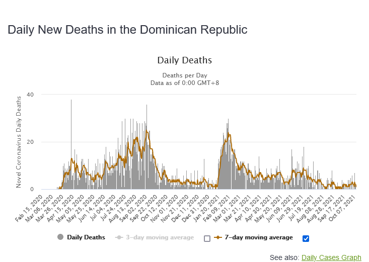 What conclusions can we draw from this? Initially Singapore did a fantastic job holding down cases and deaths, and seemed almost to have overcome covid-19, but the hit from the delta variant hit even the 81% vaccinated people severely and the latest snapshot with 3,300 cases daily. that makes Singapore the worst of the 3 by a factor of 9 versus the Dominican Republic and 112 times worse than Haiti. But since most of the Singaporeans are vaccinated the death rates are much closer: 7.5 times worse than the Dominican Republic and 5.4 times worse than Haiti.
