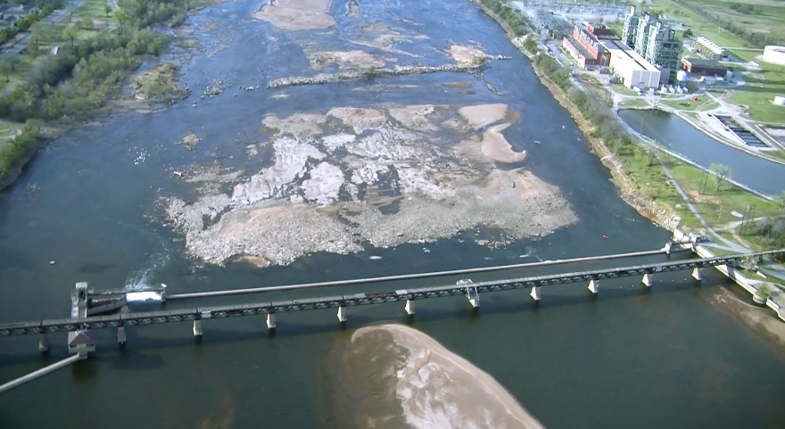 Below is a picture of the Arkansas River with sandbanks. It will have a number of small lakes with about 10 feet of water depth, mostly flowing up river, but gently flowing down river during peak power demand.