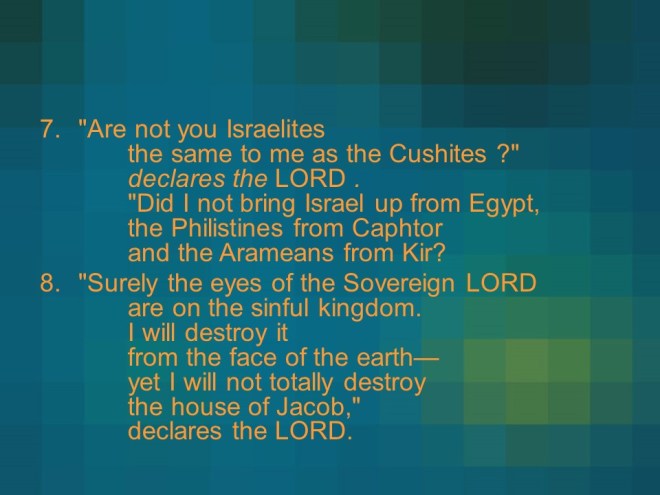 Amos 9, The Destruction of Israel, Israel will be Restored. Amos 9, The Destruction of Israel, Israel will be Restored.
